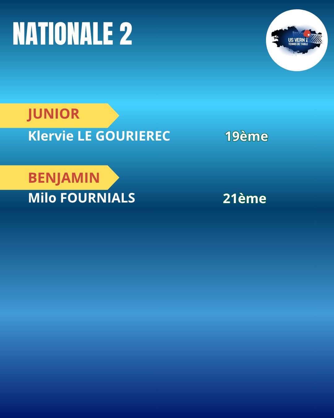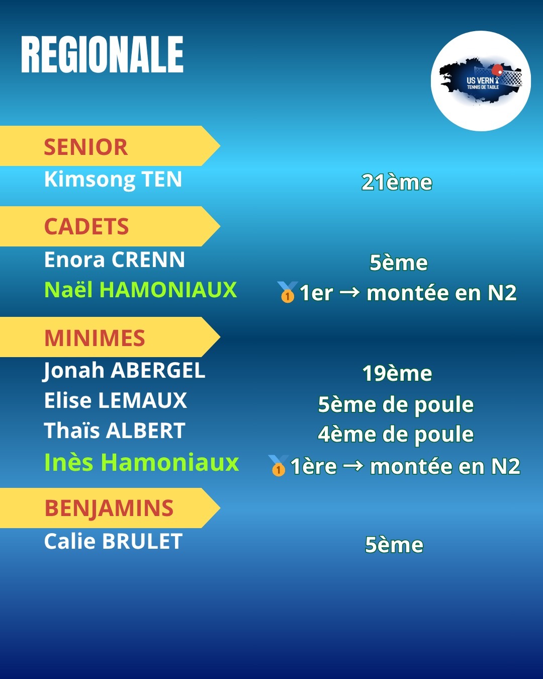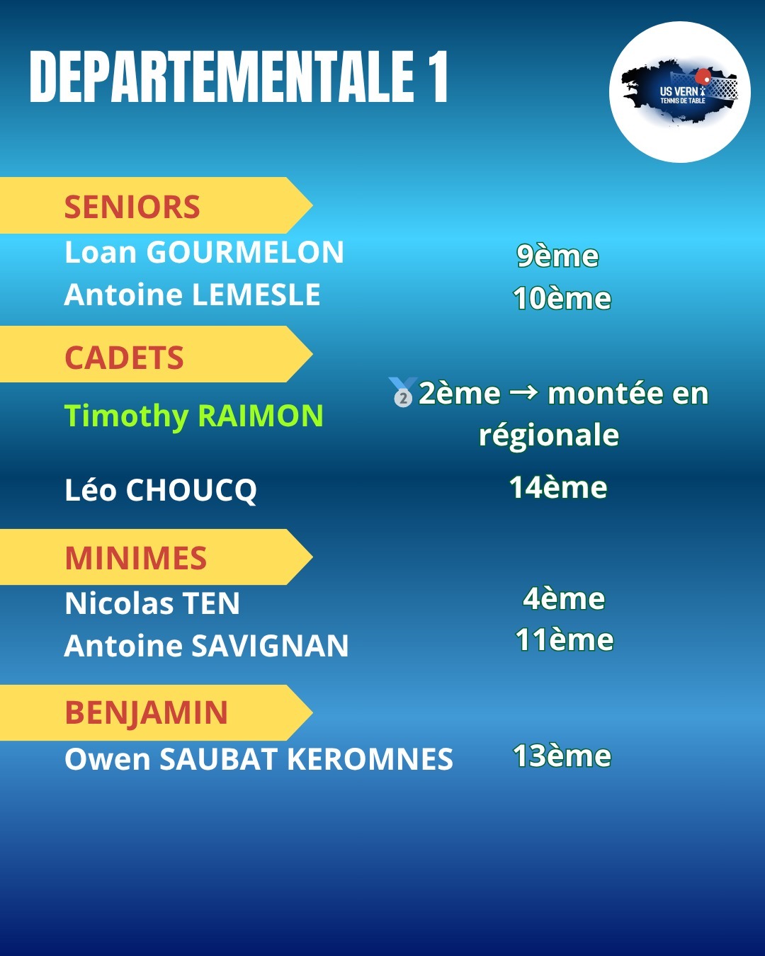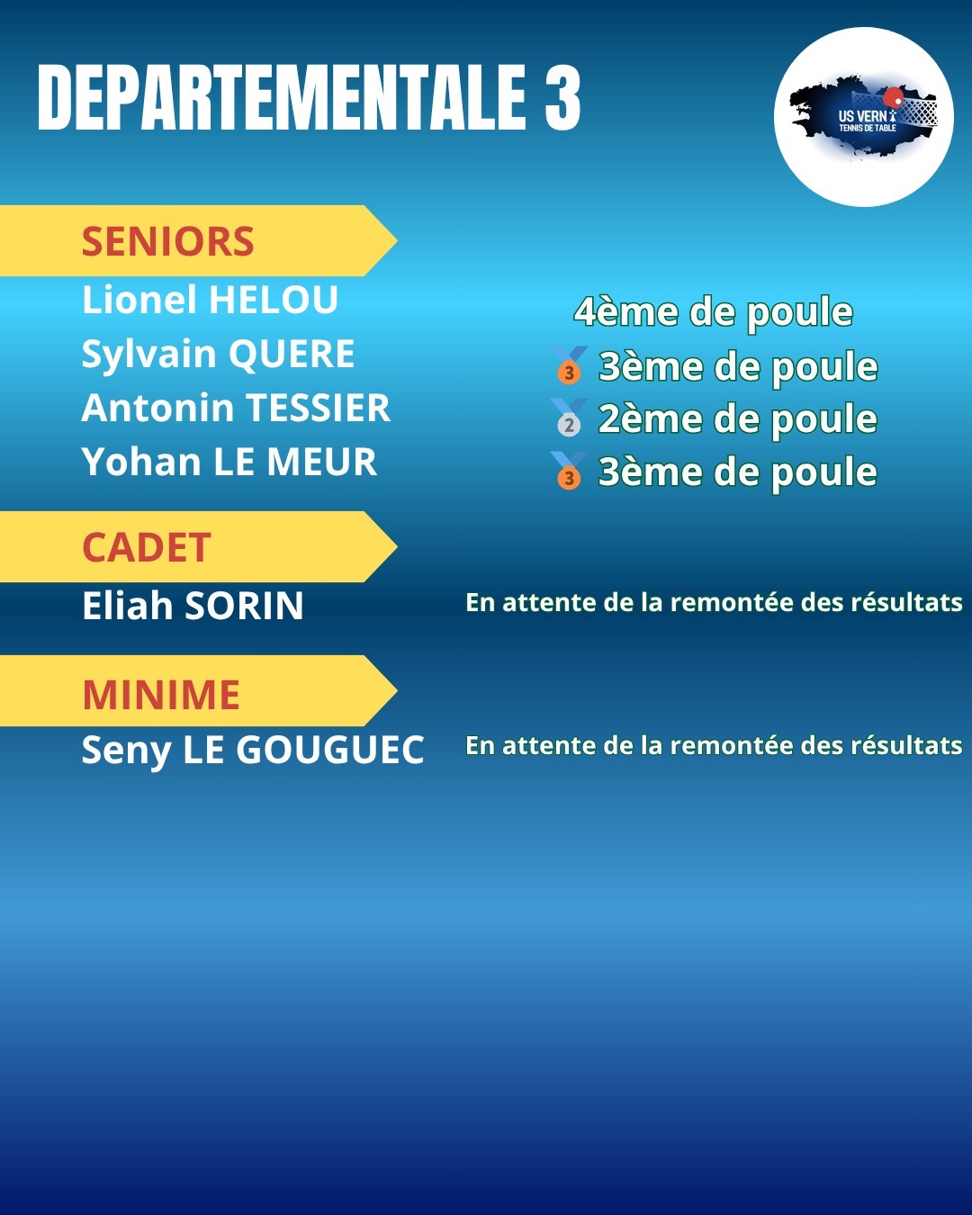 Fin du premier tour de critérium fédéral avec des vernois engagés de la Nationale 2 à la départementale 3 🏓