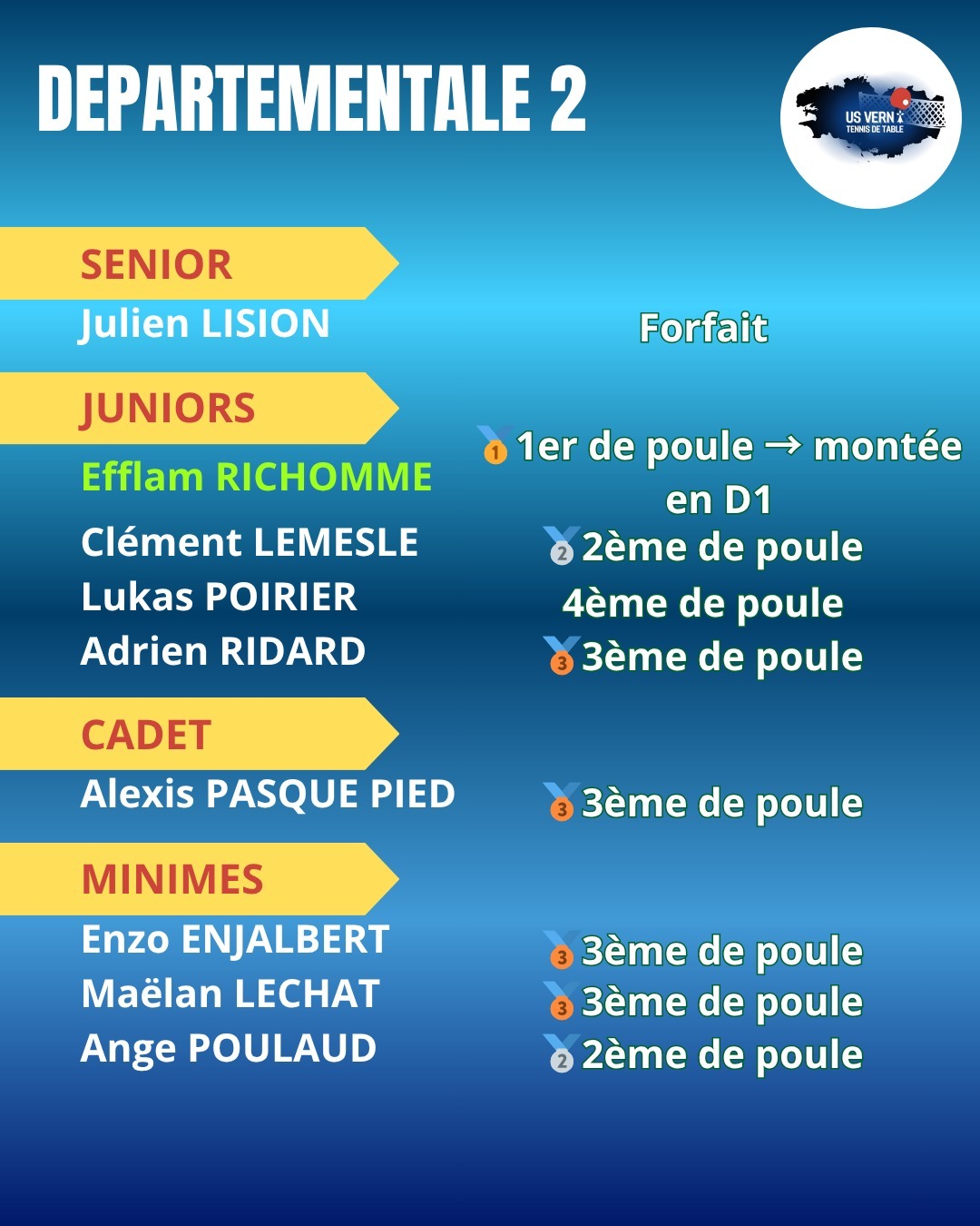 Fin du premier tour de critérium fédéral avec des vernois engagés de la Nationale 2 à la départementale 3 🏓